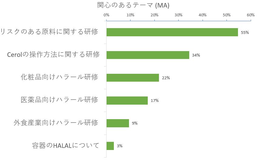 セミナー後のアンケート結果では、参加者の9割以上が参考になったと回答いただきました。また、関心のあるテーマとしては、「リスクのある原料に関する研修」が全体の55%ともっとも多い回答でした。