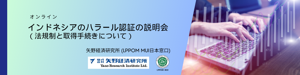 2024年10月18日よりハラール認証義務化が段階的に始まり、まずは食品飲料およびその関連製品とサービスがハラール認証を取得するかハラールでないことを明確化する対応が求められています。インドネシア政府公認のハラール検査機関であるLPPOM MUIの日本窓口である矢野経済研究所より、インドネシアのハラール認証の法規制の現状と取得手続きについて情報提供させて頂きます。
