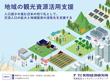 矢野経済研究所では、長年、市場調査を行う中で培ってきた業界の知見や、調査・コンサルティングノウハウ等をベースに、観光振興施策実施のための計画策定から、実行、評価、改善を支援します。