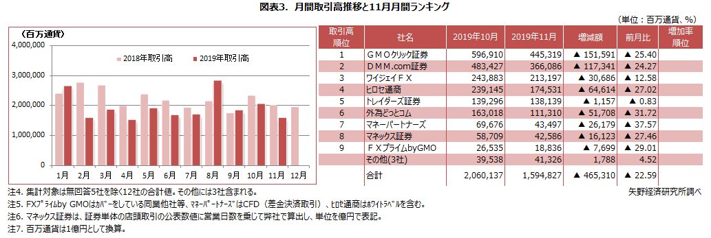 *2. SBIグループはSBI証券、住信SBIネット銀行、SBI FXトレード3社の店頭取引の合算値。GMOグループはGMOクリック証券、FXプライムby GMOの店頭取引の合算値。