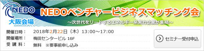 NEDOは2月22日に大阪市内で「NEDOベンチャービジネスマッチング会」を開催します。