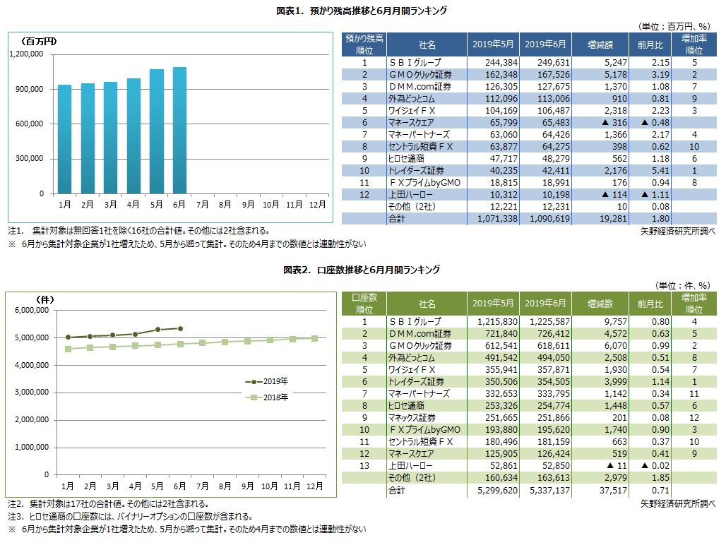 有力FX企業17社の月間データランキング-2019年6月-