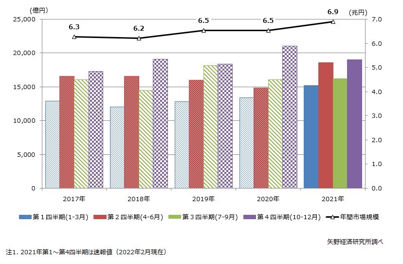 そのようなことを踏まえると、2022年が前年よりも感染状況が落ち着きを見せた場合、2022年の住宅リフォーム市場はボトムの6.5兆円で着地するものと予測する。