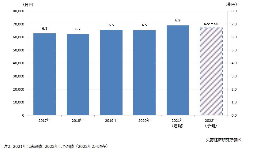 2022年の住宅リフォーム市場規模は、約6.5~7.0兆円で推移するものと予測する。