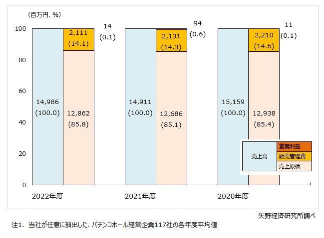 パチンコホール経営企業117社の2022年度決算平均、営業利益率1%未満という厳しい状況が続く