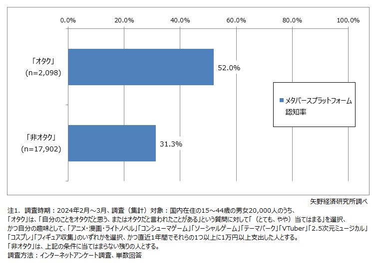 ~「オタク」のメタバースプラットフォーム認知率は52.0%「非オタク」を約20ポイントほど上回る~